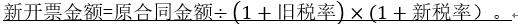 1.合同于2019年4月1日之前簽訂,但合同項(xiàng)下的納稅義務(wù)發(fā)生時(shí)間在4月1日后(含)的業(yè)務(wù),請(qǐng)貴司開具等值于按照如下公式計(jì)算的金額的增值稅專用發(fā)票: